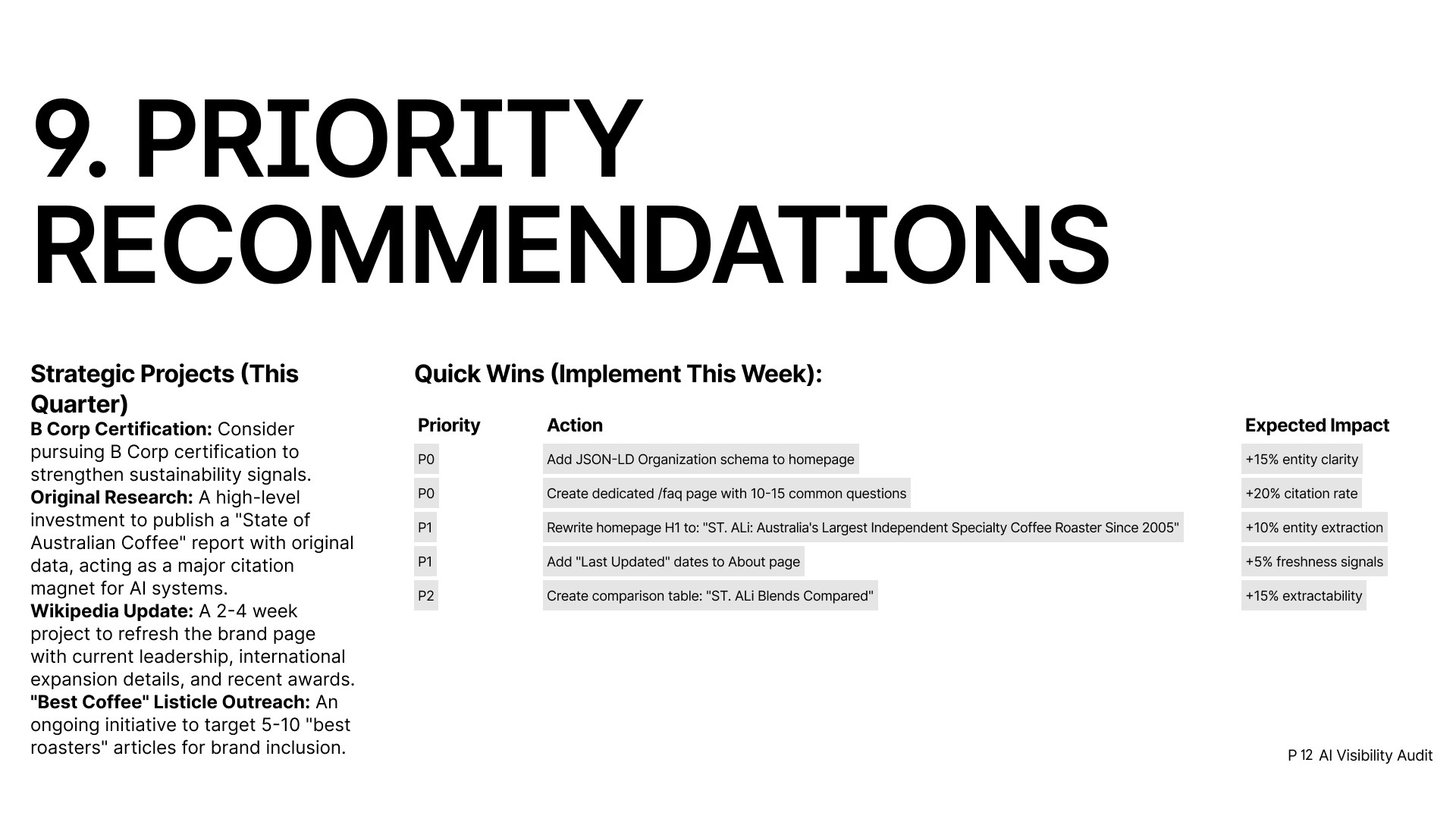 From quick wins you can implement this week to longer-term moves that improve how AI models understand and recommend your brand.